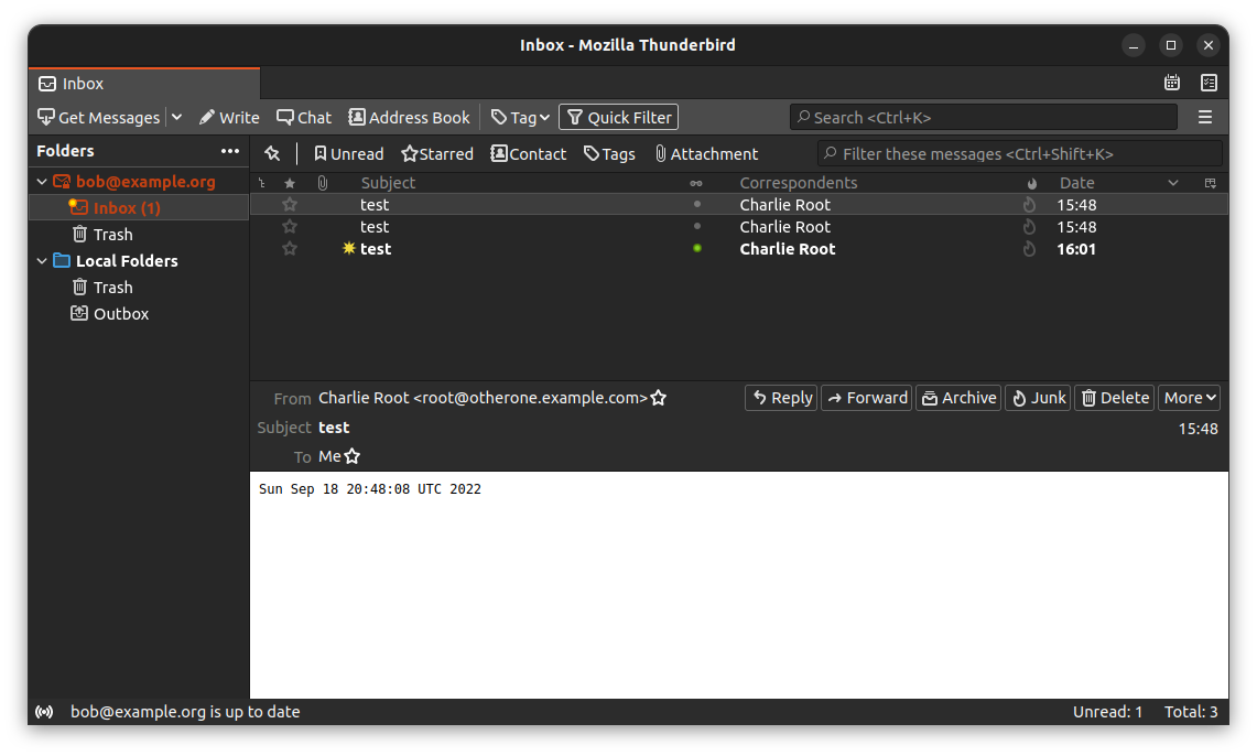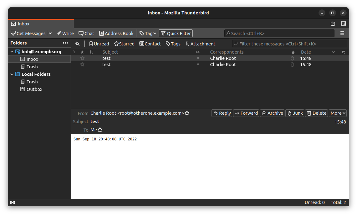Success, the new account is setup ready to send and receive mail. Here are some examples below.